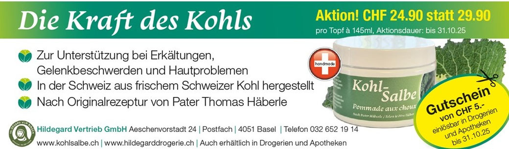 Zudem führen wir die Kohlsalbe nach Pater Thomas Häberle in unserem Sortiment. Pater Häberle wurde 1912 im Entlebuch geboren und starb 1997 im Kloster Disentis. Er war in mehreren Klöstern der Schweiz (u.a. St. Johann Müstair) als Naturheiler tätig und gilt über die Landesgrenzen hinaus als der "Kabisdoktor" oder "Kabispater". Wir sind stolz, dieses wertvolle Salbe in Origninalrezeptur anbieten zu können.